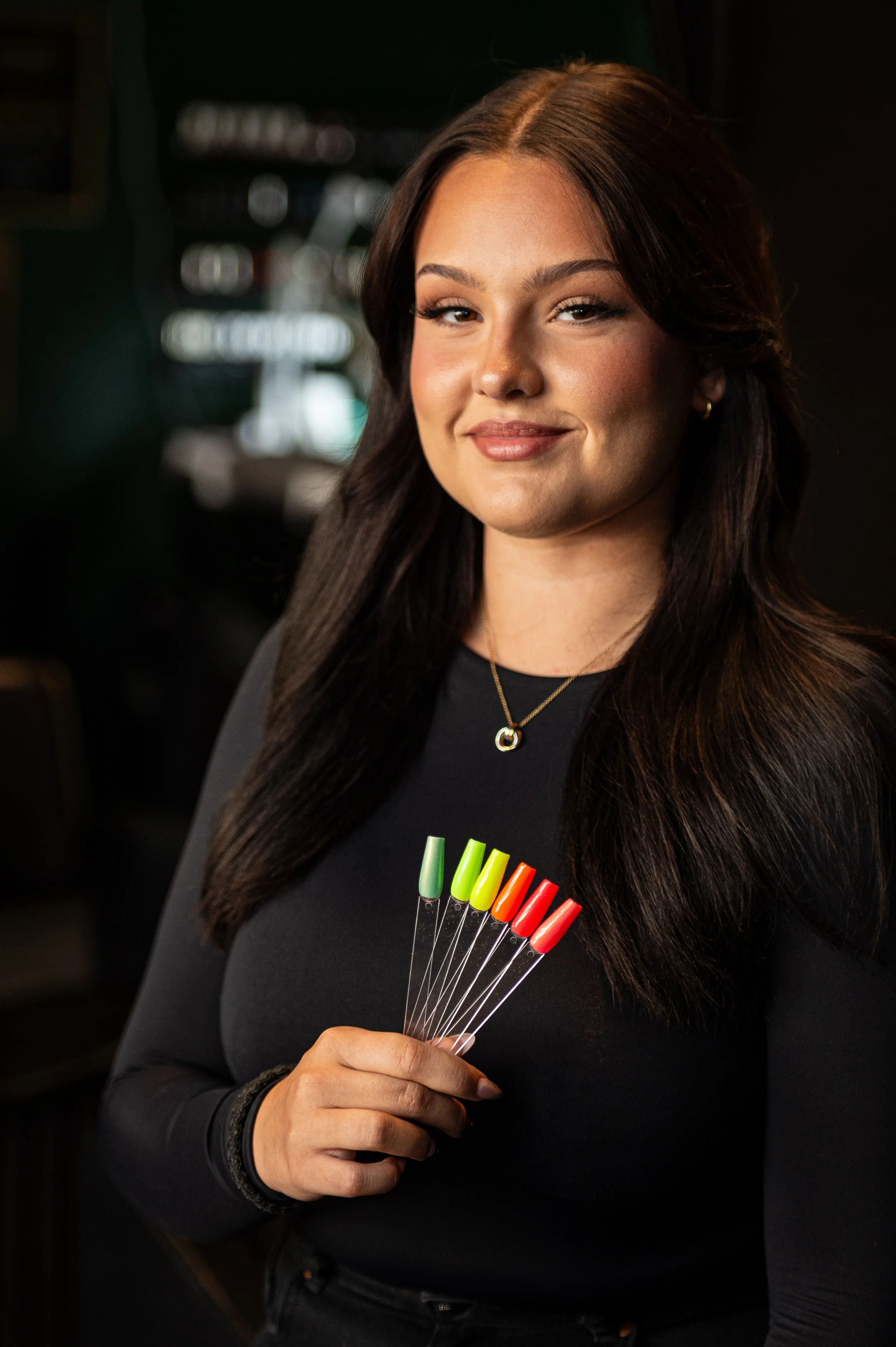 Vår nagelterapeut bygger upp, förstärker, förlänger och lagar naglar med olika metoder och material. Behandlaren använder Nail Systems och Lilly Nails märke.